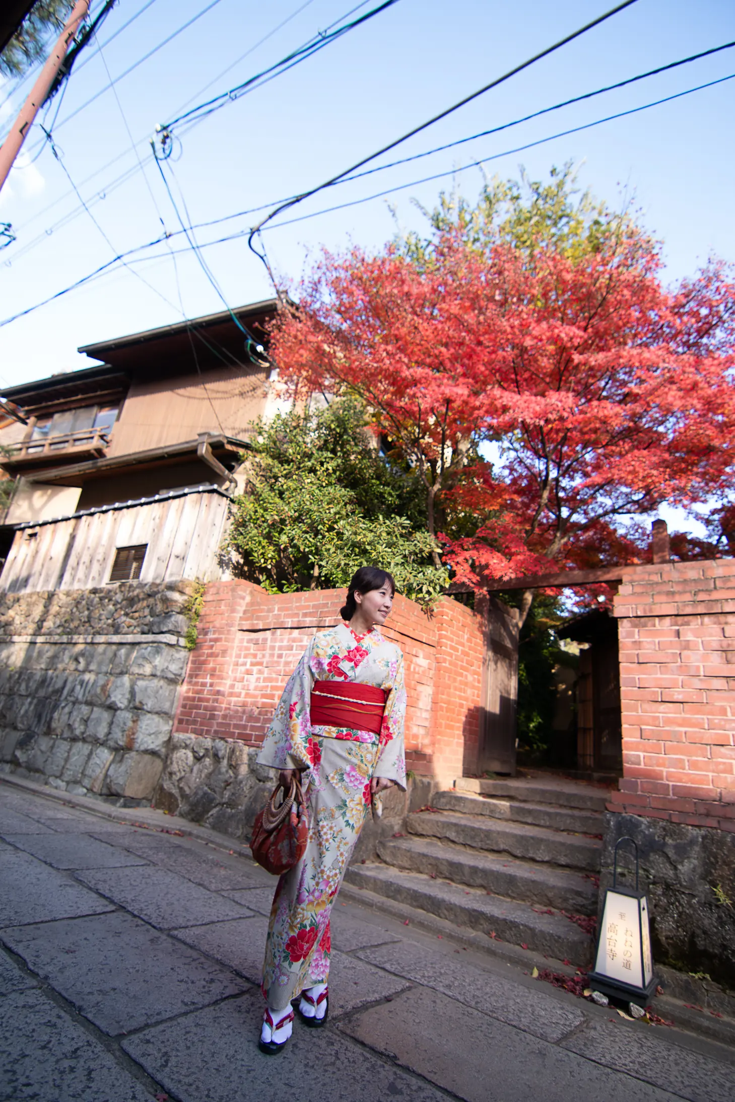 身穿著和服踩在二年坂的街道上,即使身處2017年的現在,卻一點違和感也沒。