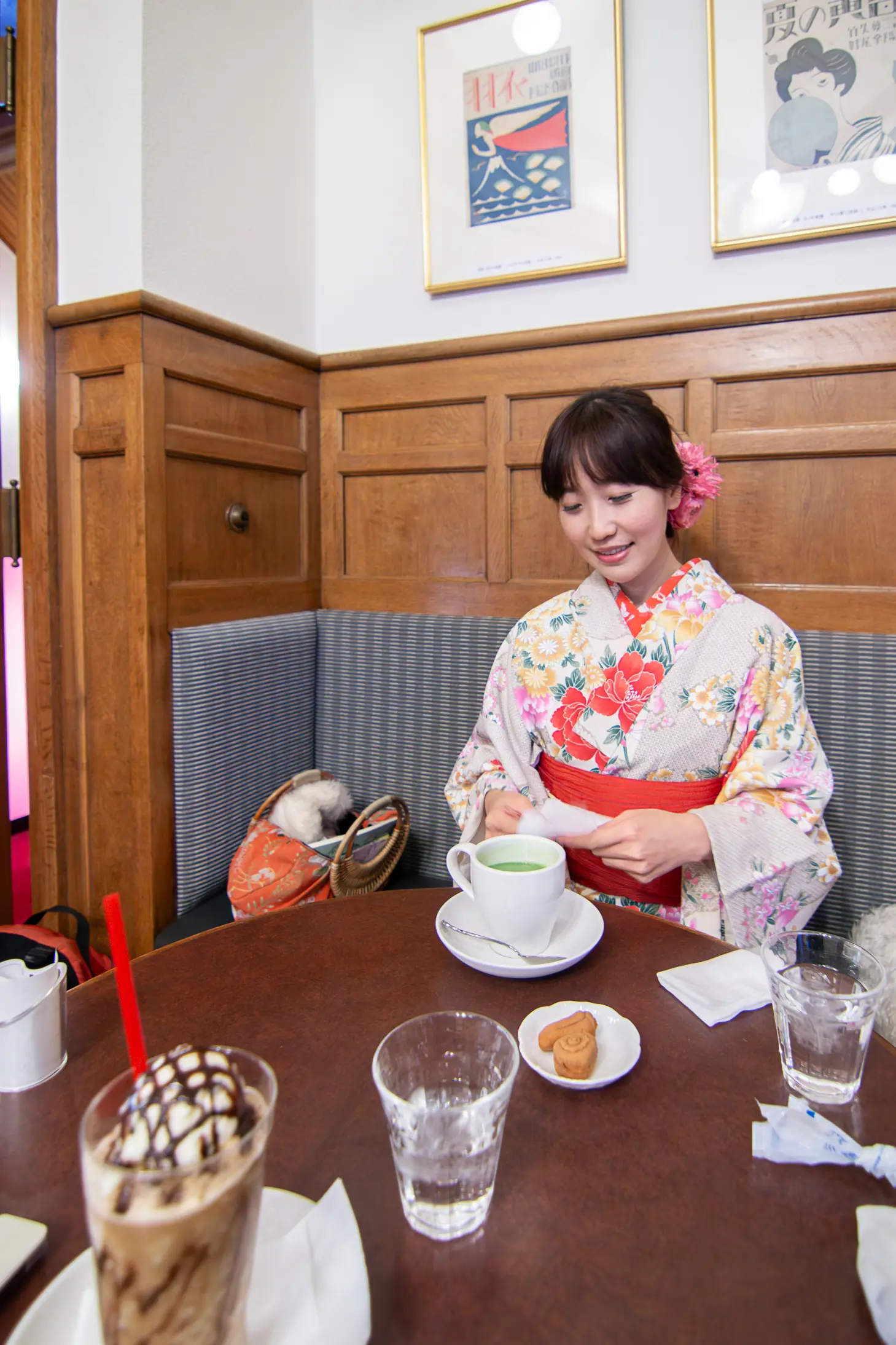 起身離開咖啡廳後,我默默地一路往岡本和服前進,一個小時前說要把和服穿到晚上八點的雄心壯志,大概跟那杯熱抹茶一樣被喝掉了XD