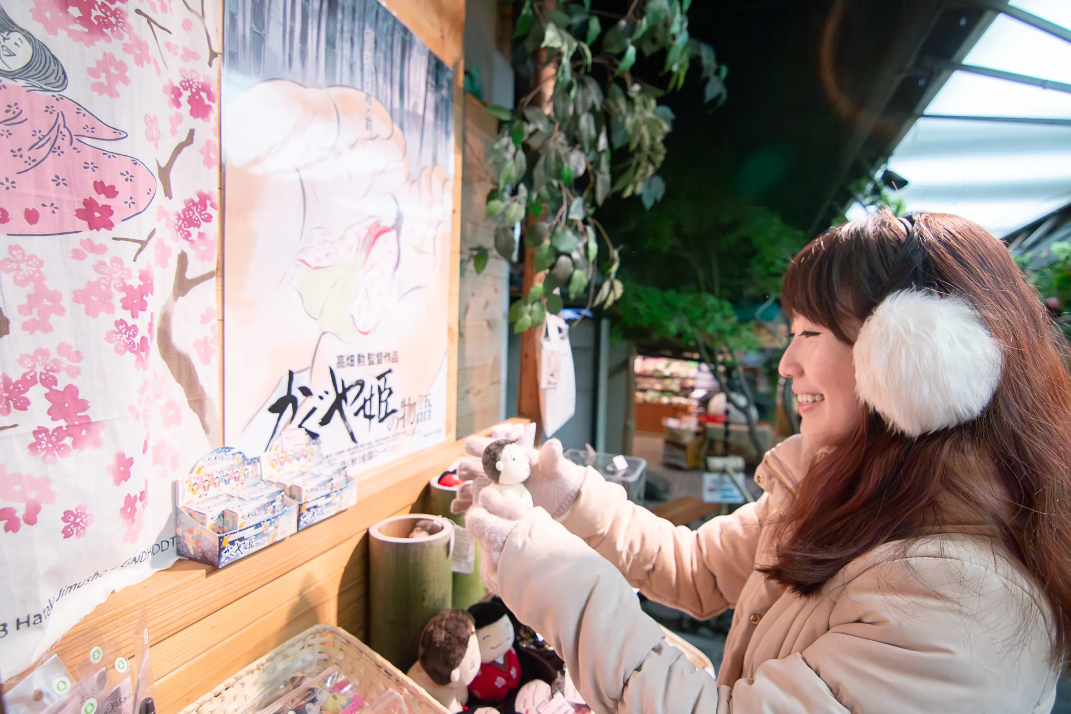 在脫掉綁在腰際上的帶子後,Rose突然又很有元氣的可以大逛特逛。(剛剛的疲憊消失得無影無蹤 ) 最近日本電視一直主打かぐや姫的廣告,如果講竹取物語的話大家應該會比較有印象吧!台灣有嗎?有要播出上映的消息嗎? 每次看到這樣帶有憨憨笑容的宮崎駿玩偶,都覺得好療癒唷!