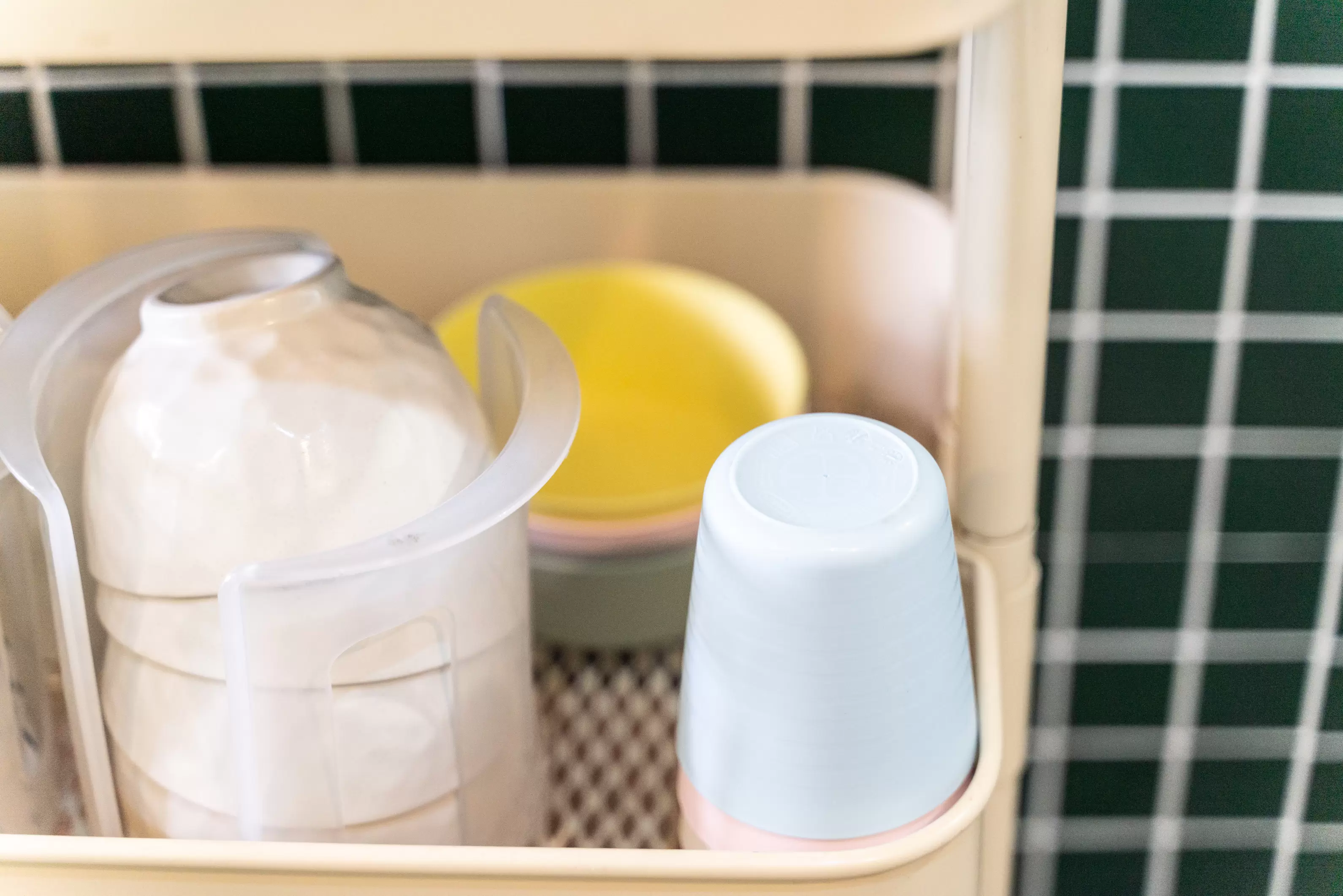 櫃檯前的推車還備有空碗兒童安全餐具,有需要的朋友可自行取用。