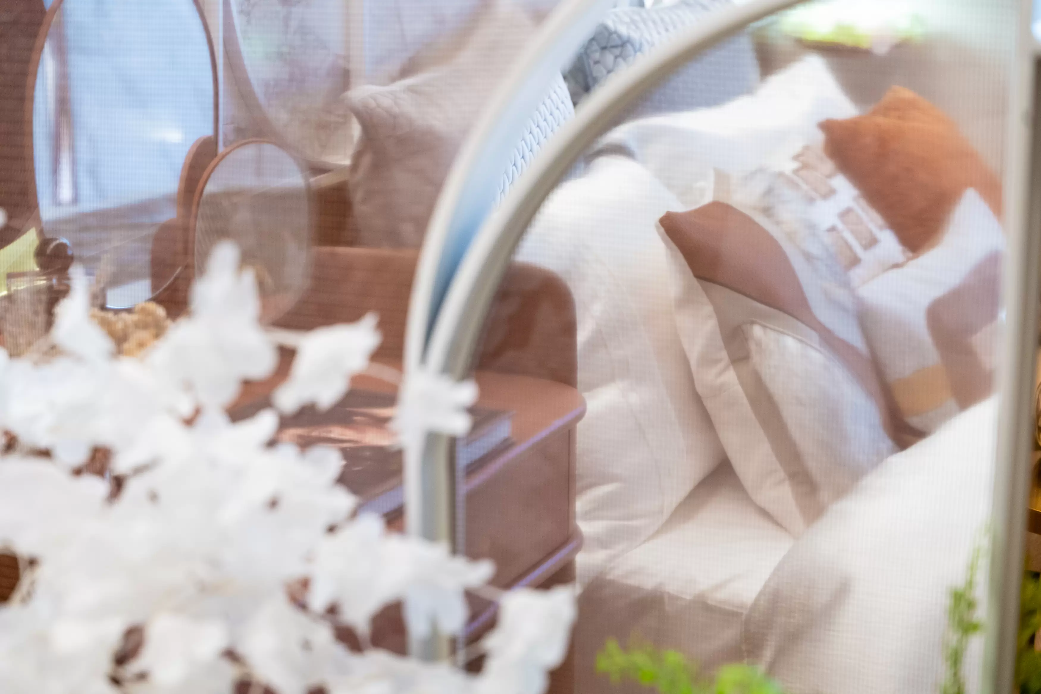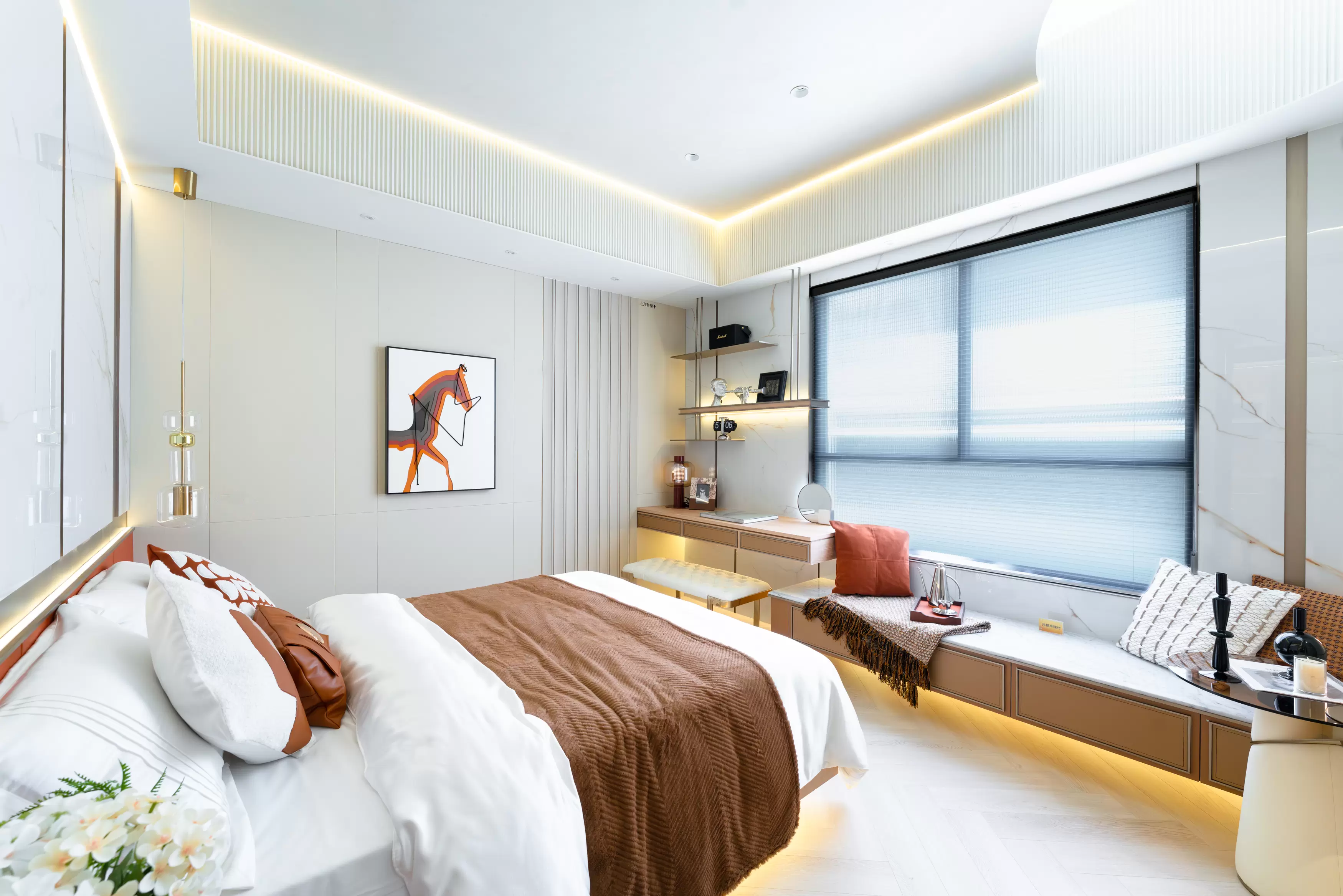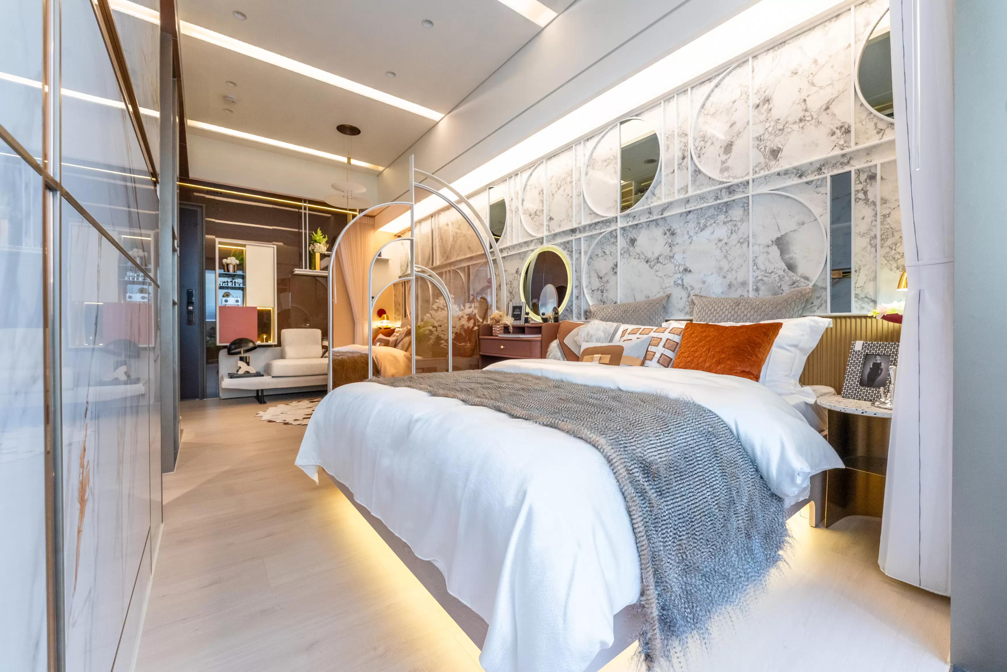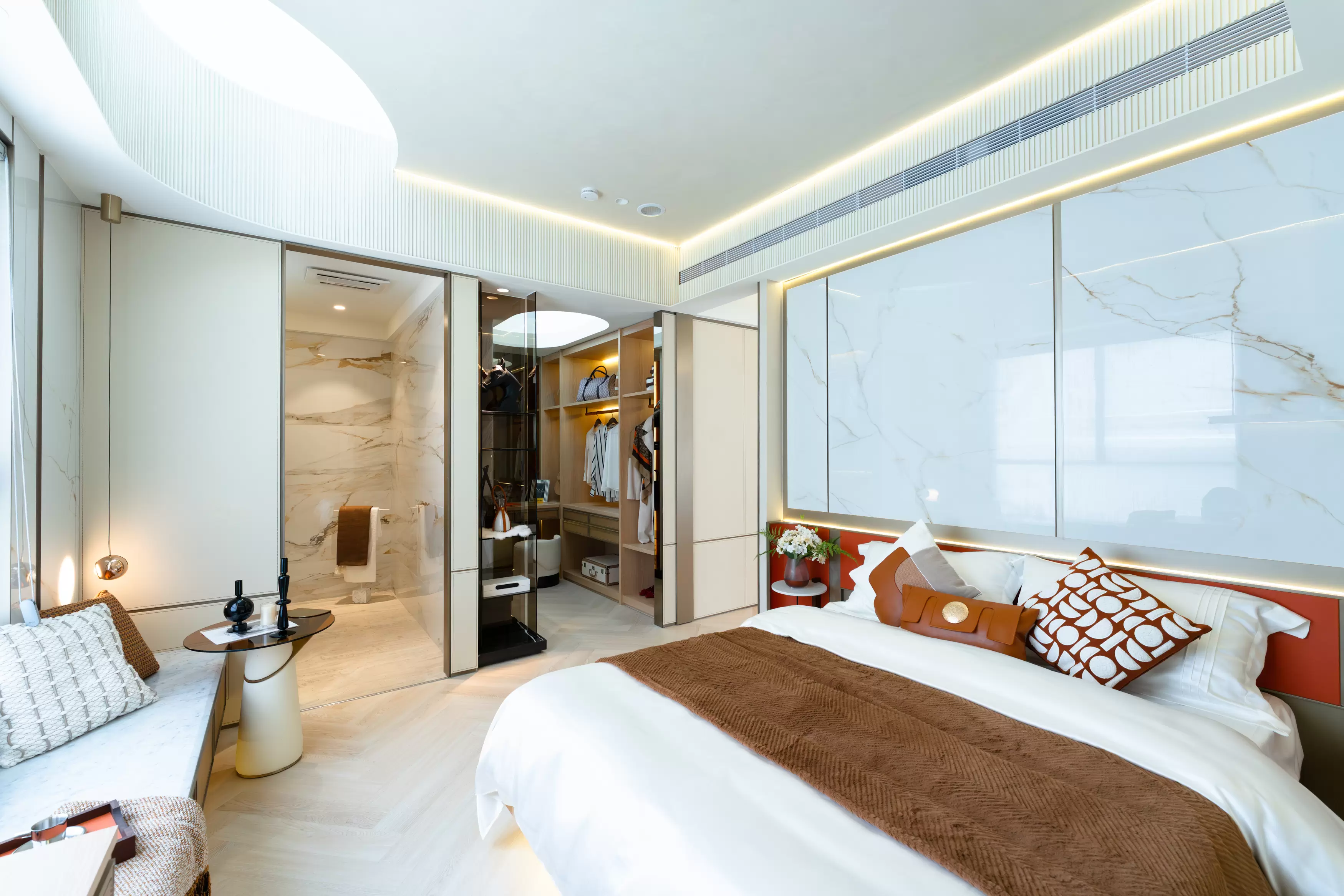 這間A1格局樣品屋展示的是靈活變化的設計範本。現場將其中一間次臥整併入主臥,改為更衣室使用,形成更高機能主臥空間。若未來有不同需求,也可彈性規劃為書房、兒童遊戲室或獨立臥室。