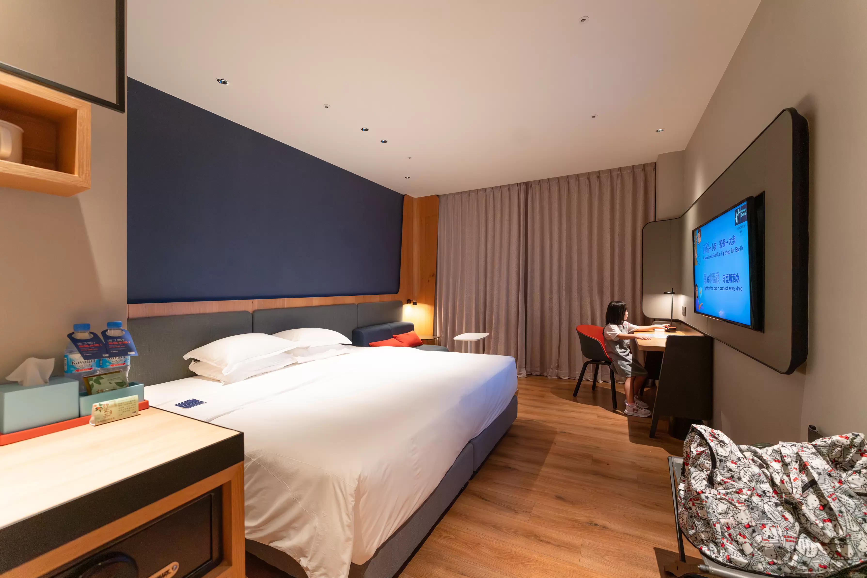 一走進飯店,可搭手扶梯直達2樓大廳辦理入住。大廳以清爽的藍色為主調,給人一種簡潔明亮的感受。櫃檯人員親切,在辦理手續時,只需報上IHG會員編號累積點數,還可收到額外的驚喜唷!