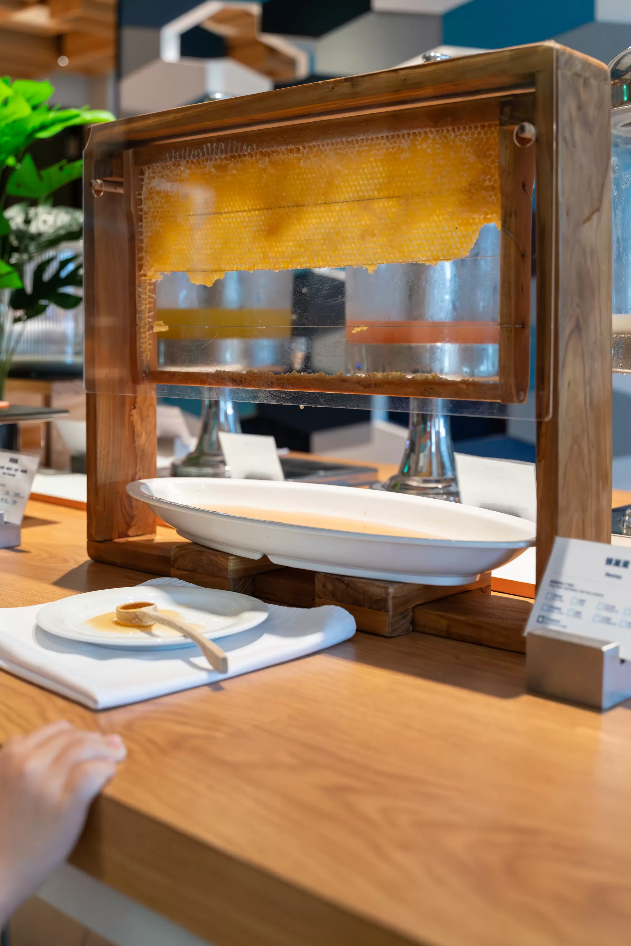 最我驚豔的是,現場居然有五星級飯店才比較容易看到的蜂巢蜂蜜!一看到有,我們立刻拿來泡蜂蜜紅茶,母女倆都好喜歡!還有 還有 飯店的起司,我一定會拿一些配小餅乾吃,美味又滿足。