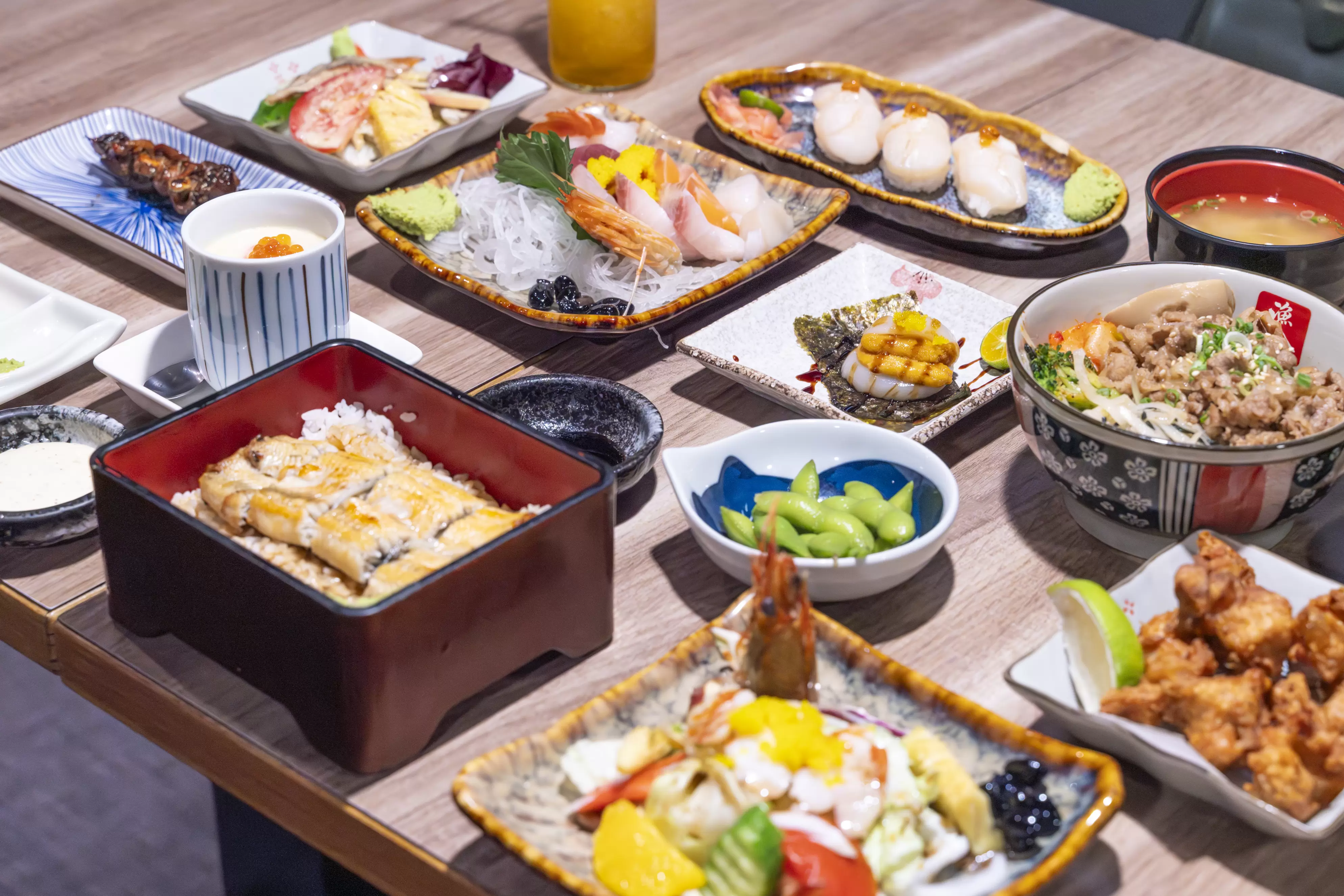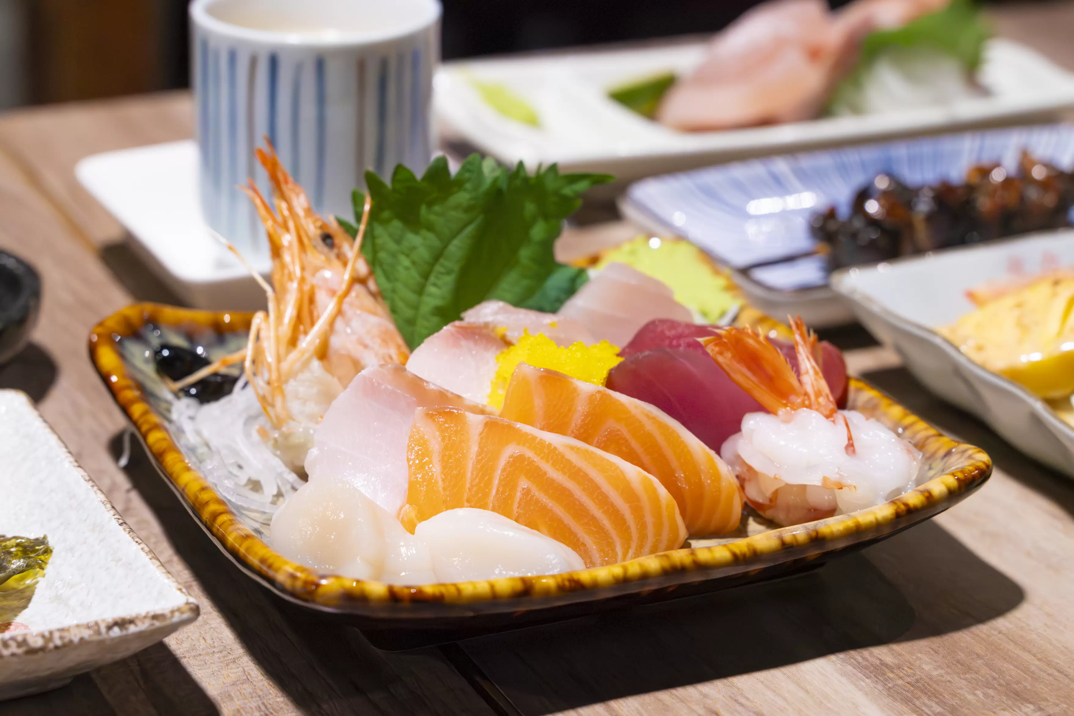 綜合刺身拼盤,猶如一場視覺與味覺的盛宴。干貝鮮彈、甜蝦肉質清甜、鮭魚與鮪魚油脂交融,每一口都在嘴裡緩緩展開不同層次的鮮美。沾點現磨山葵與醬油,海的風味更被提升,這份鮮美是大海最純粹的饋贈呢!