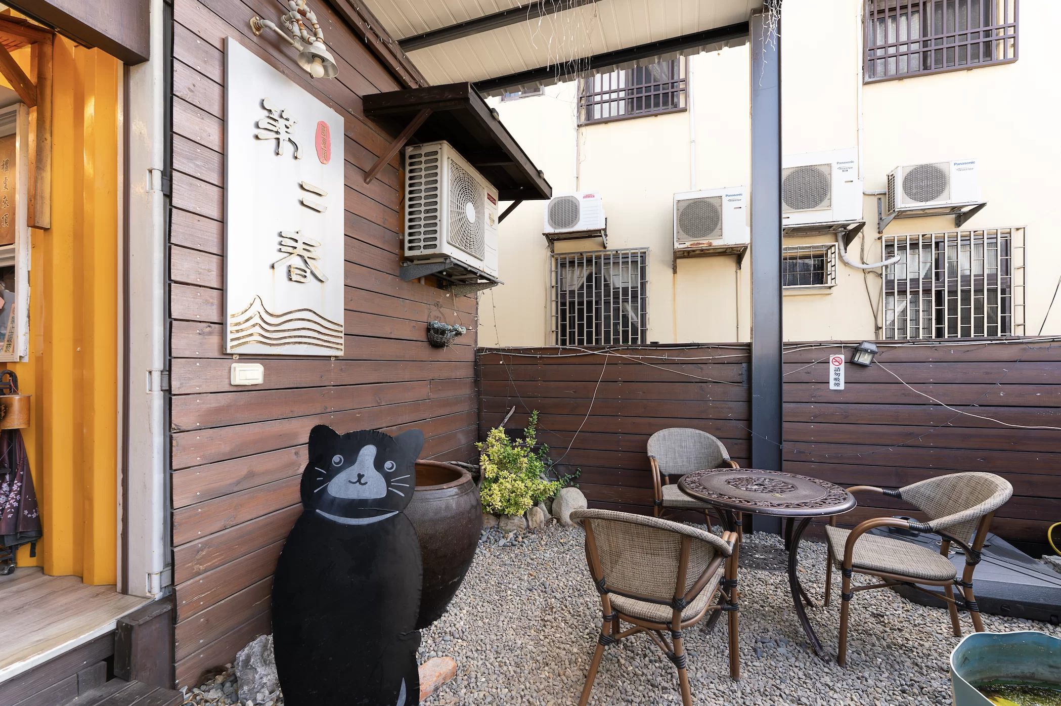 店員帶我們到對面第二用餐區,這裡的燈光溫潤桌距舒服,空間約擺有四張四人座,氛圍比想像中愜意許多。外頭的小庭院還擺著一張小圓桌,氣溫舒適的季節坐在外面吃麵,真的頗有小歐洲露天用餐的隨興感