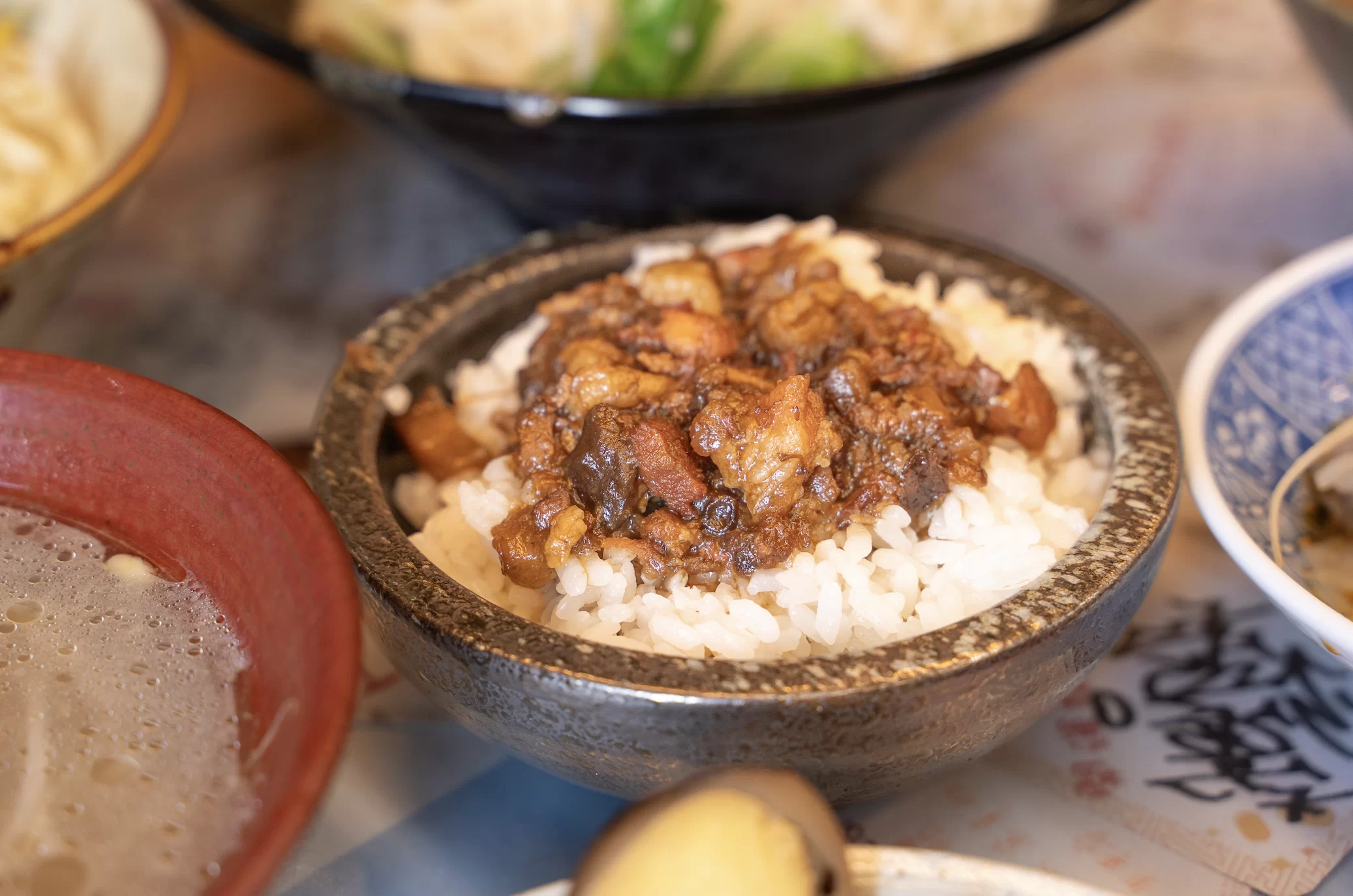 🍚 招牌滷肉飯(小)淋上去的滷汁鹹香剛好,不油不膩,帶一點傳統肉燥的甜香。拌開後,每一口都是熟悉的家常味,如果敢吃辣的話,推薦配上辣台妹辣油子更香。