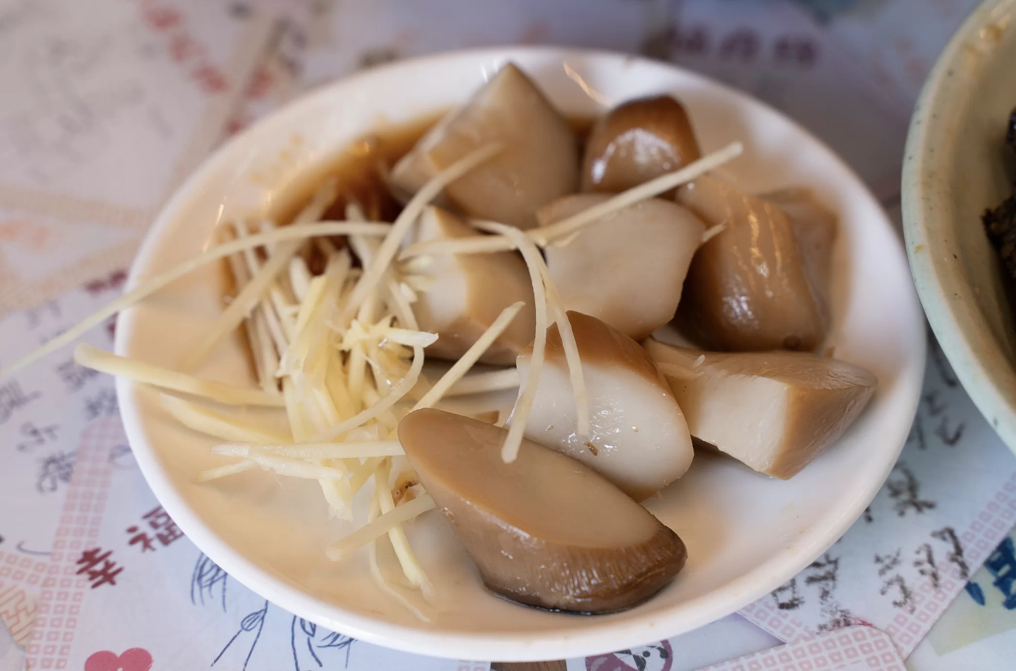 杏鮑菇切得厚實,口感脆嫩,清燙保留了水份與香氣,配上一點店家的辣油子,會有不同驚喜。是一道很耐吃、很解膩、很自然的好味。