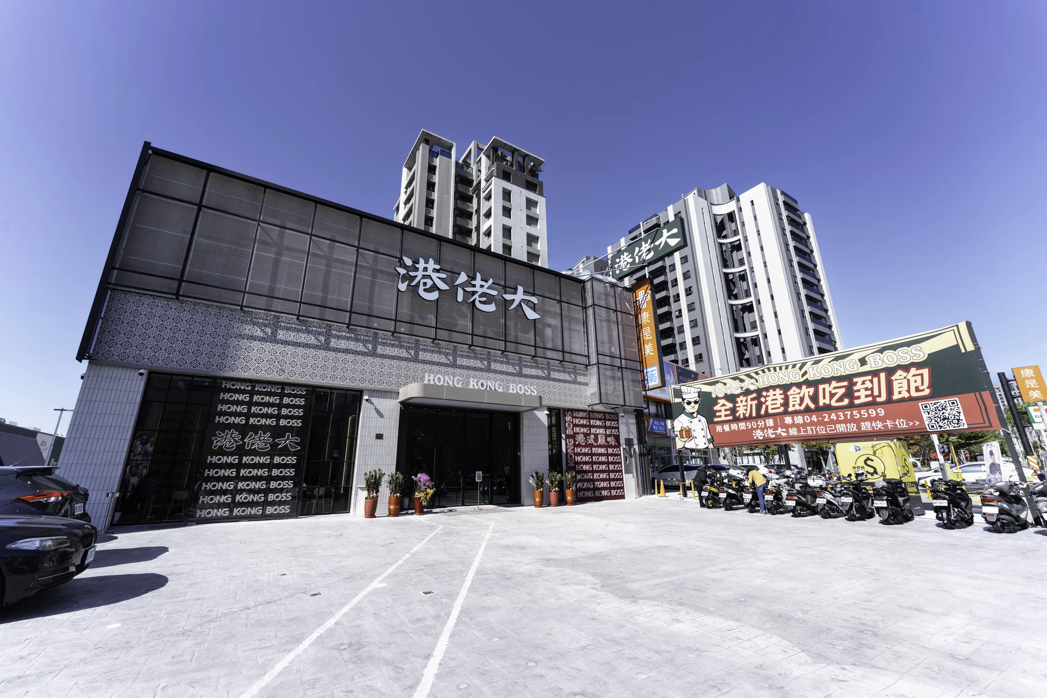 港佬大位在台中機捷特區,正對面就是好市多,第一次來也不太會迷路。餐廳前方與側邊有部分空地可以停汽、機車,周邊也有付費停車場(沒有特約),最划算的是捷運站地下停車場,對開車族來說算是加分。