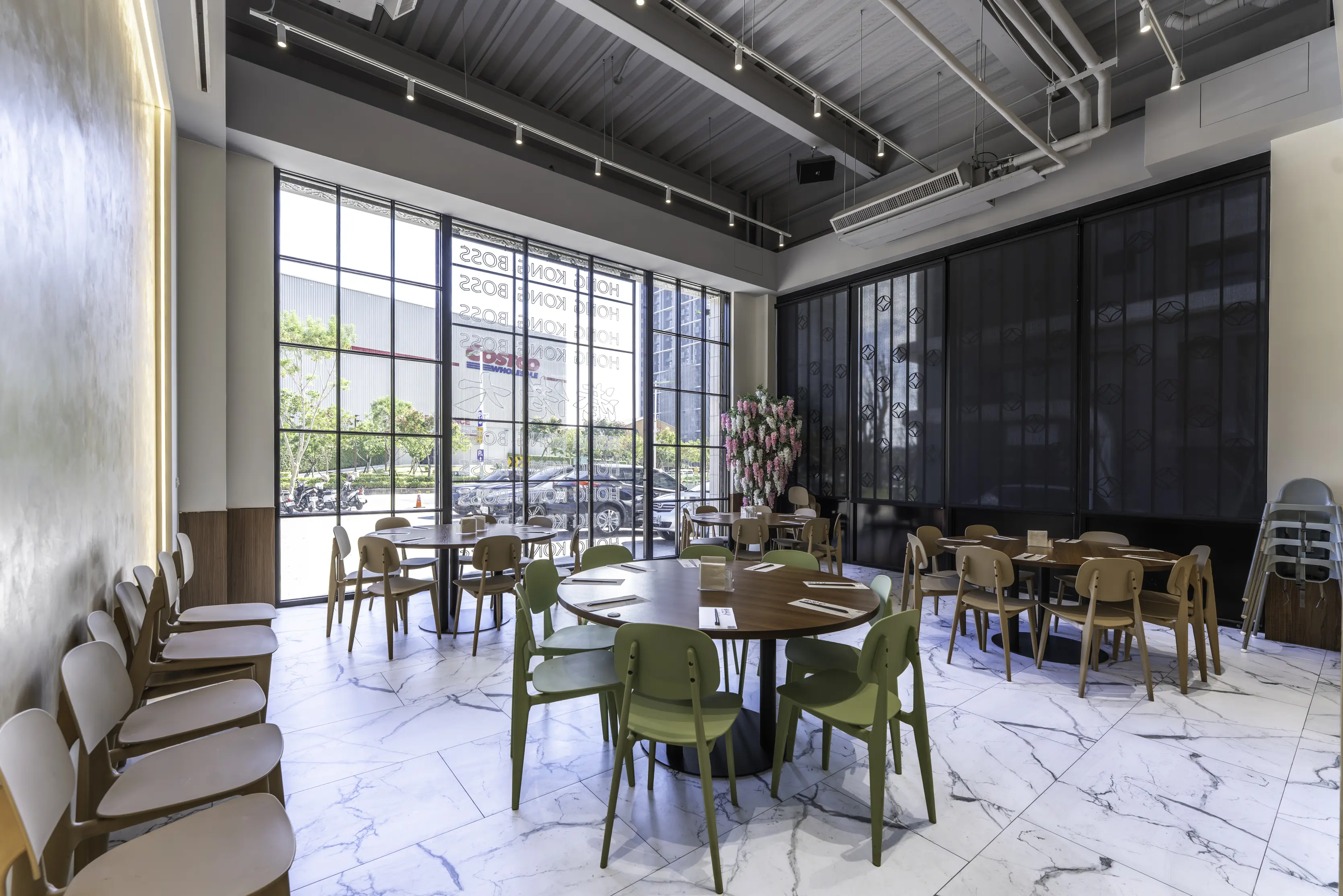 再進去的用餐區 挑高設計讓整個環境顯得明亮不壓迫,座位配置也很多元,從雙人桌、四人桌到多人大圓桌都有,還有一小區像包廂般的座位,也很適合家庭或團體聚餐。