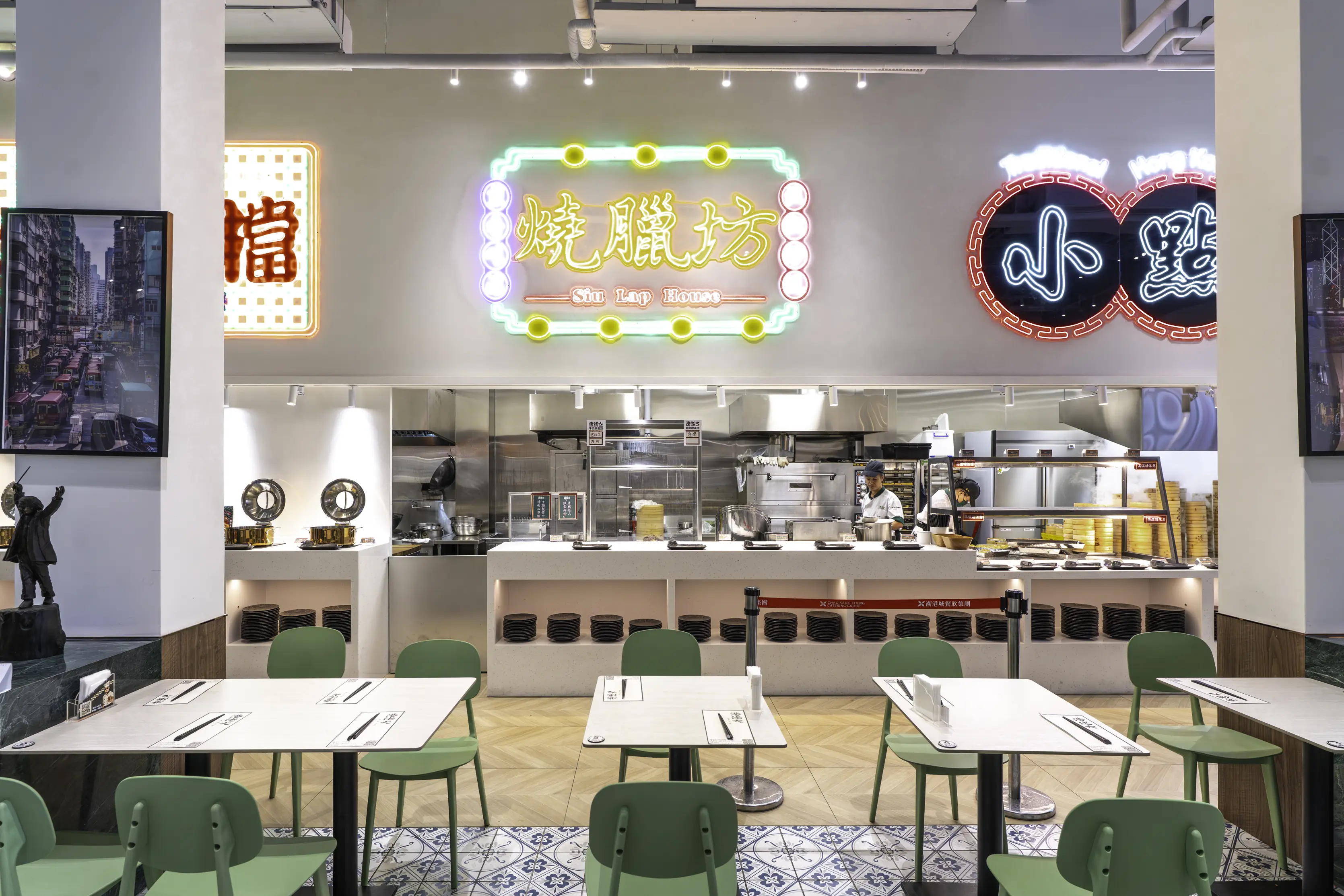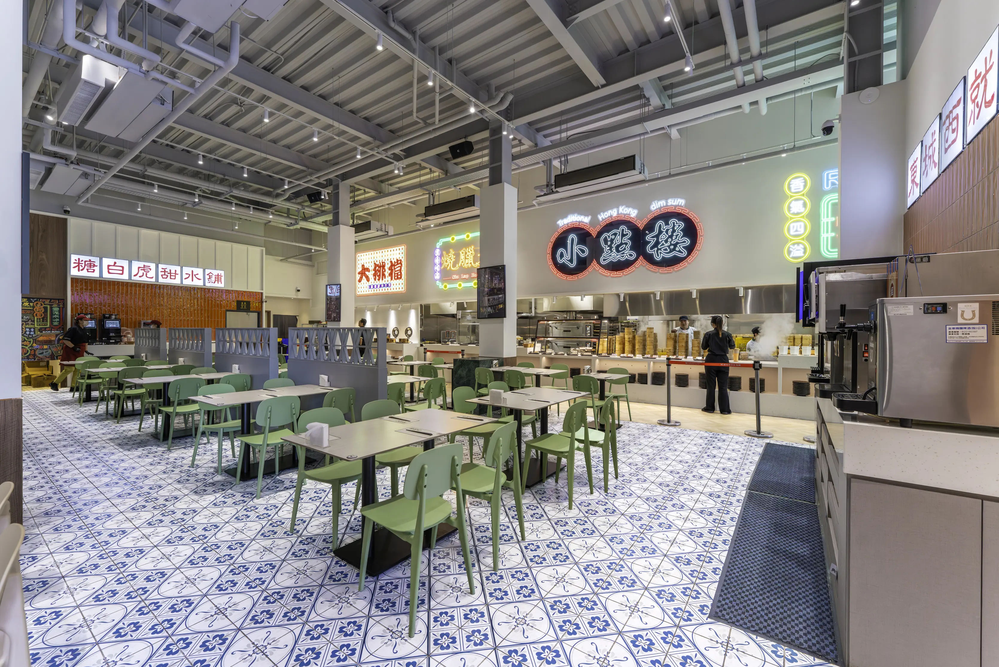 蒸籠燒賣區、酥餅港點區、腸粉/湯品/粥品區、燒鴨燒臘區、主廚功夫菜區,以及甜點飲料區。