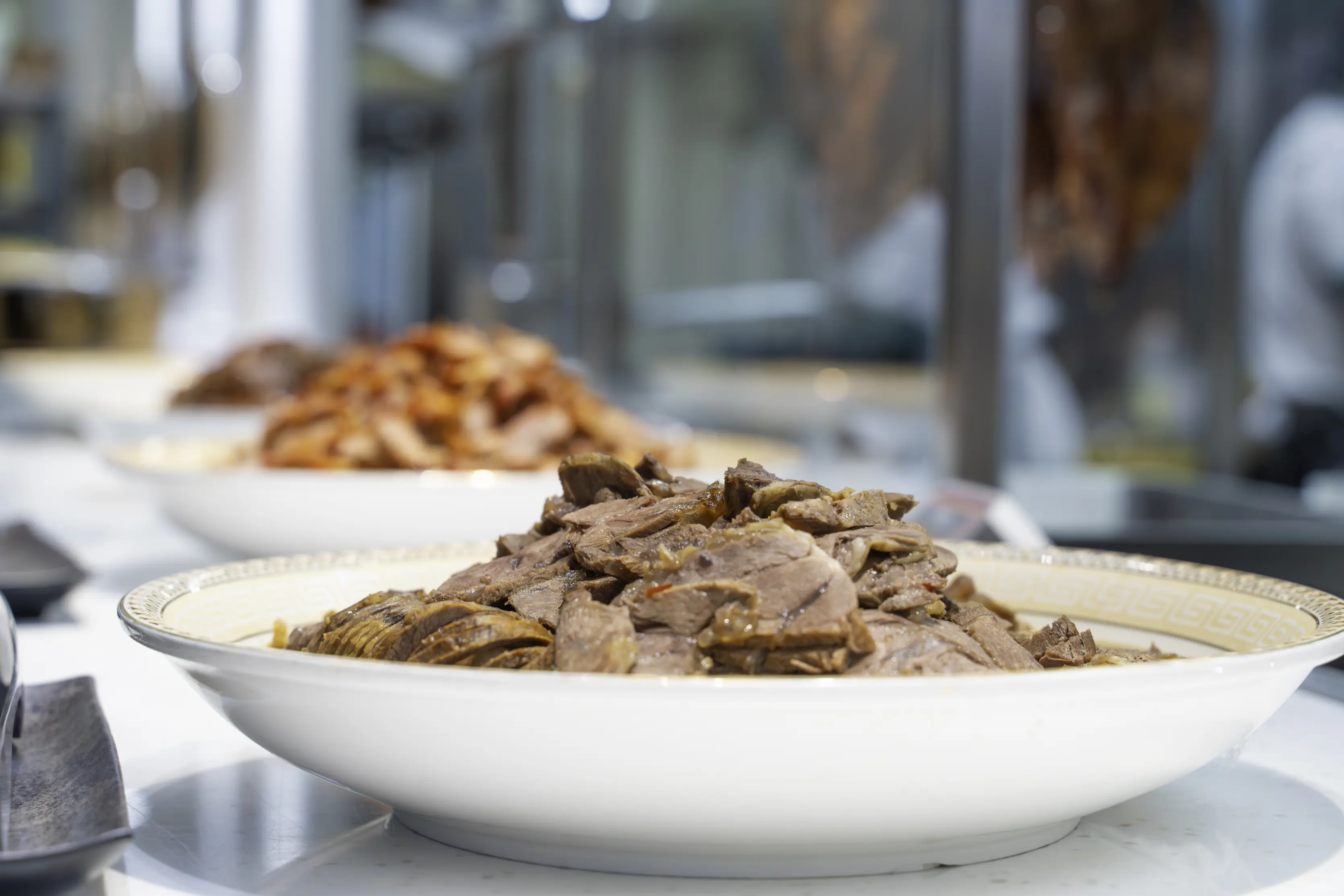 這一區的蜜汁叉燒與滷香牛腱切片也很受歡迎。特別是牛腱,滷得軟嫩入味,切片厚實,吃起來很過癮。