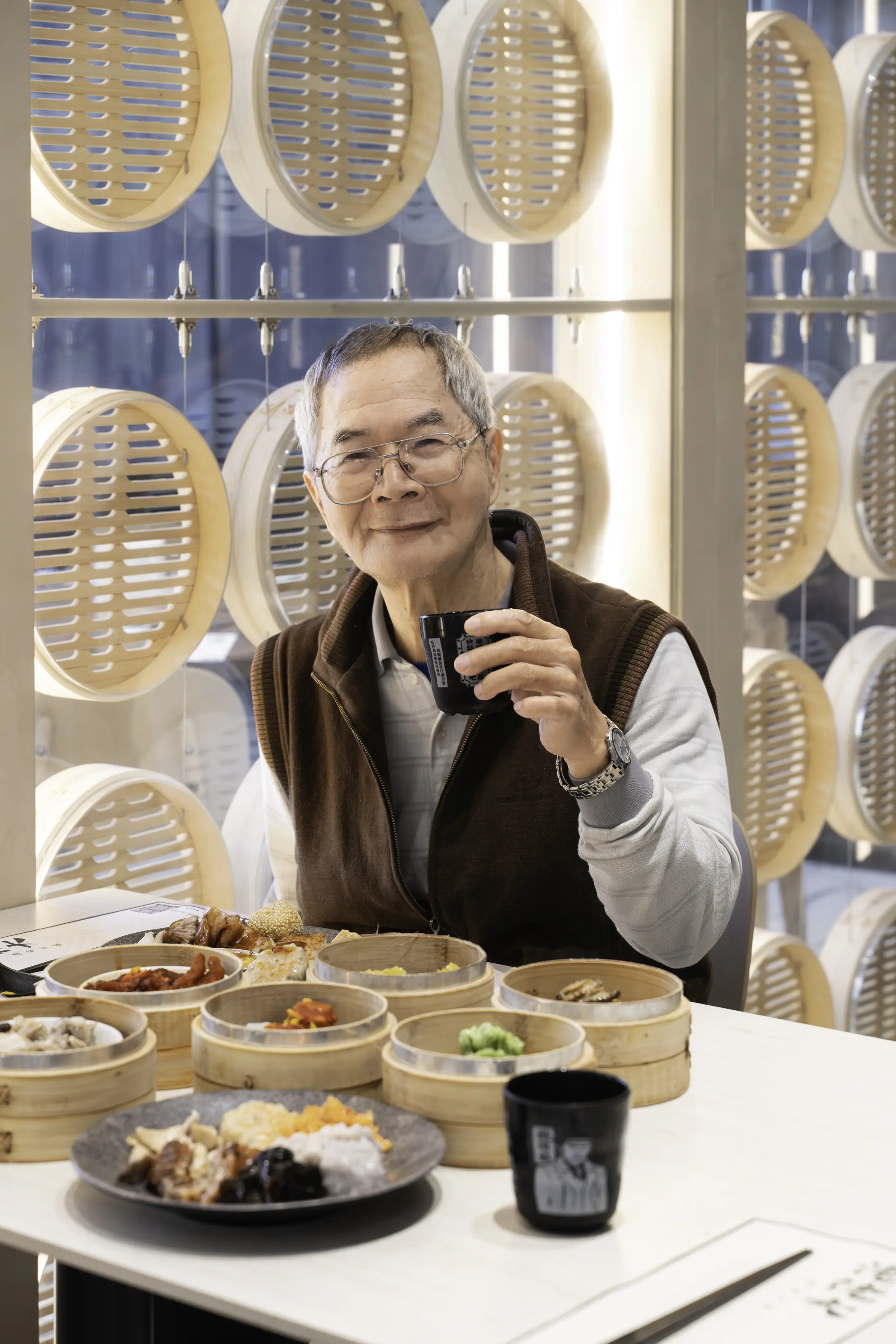 啤酒配著一籠籠港點,喝了好幾杯,臉上一直是滿足的表情。